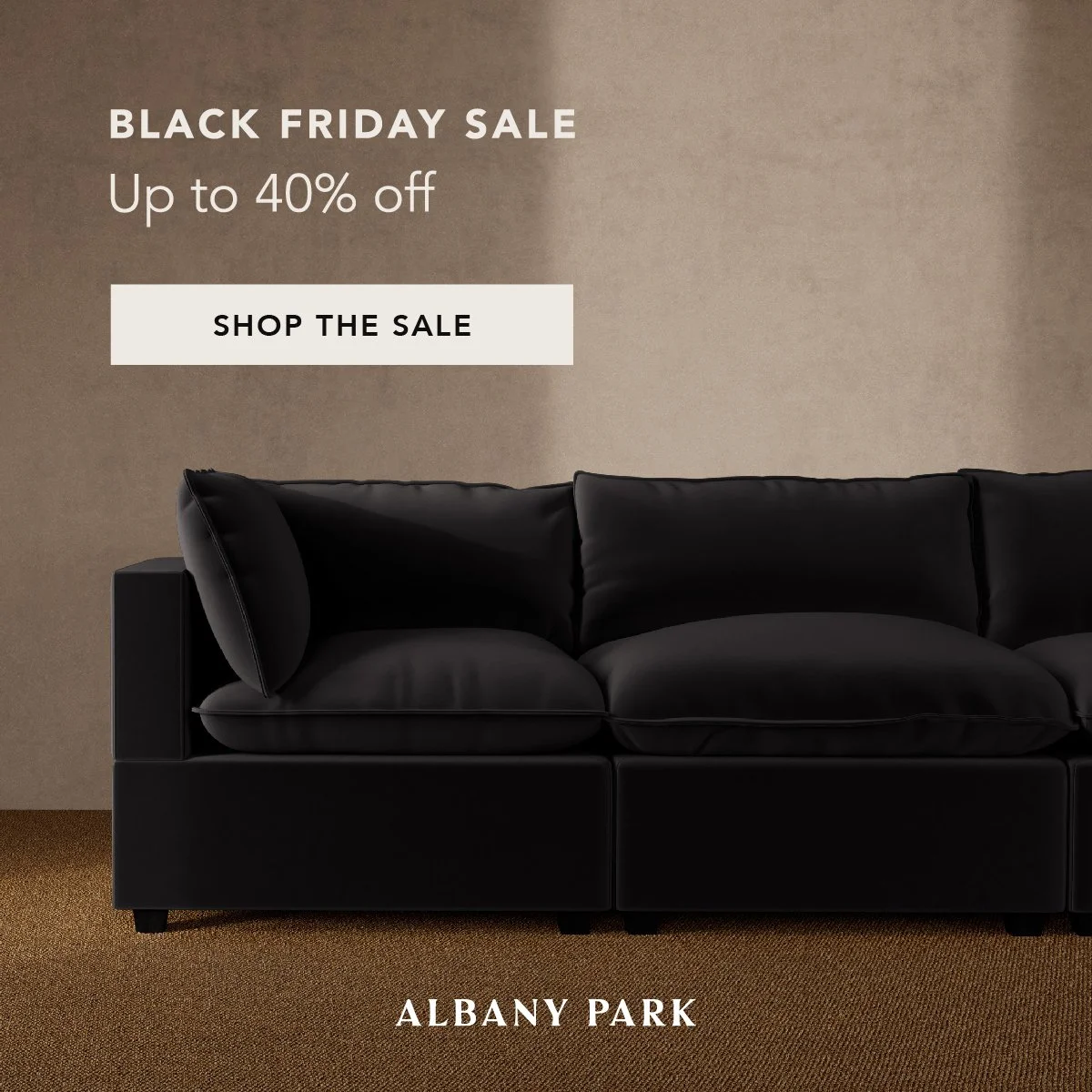 Black Friday (2024) for Albany Park. Designed in Cylindo Studio. Web, advertising, email and social. Directed by Marcel Seva.